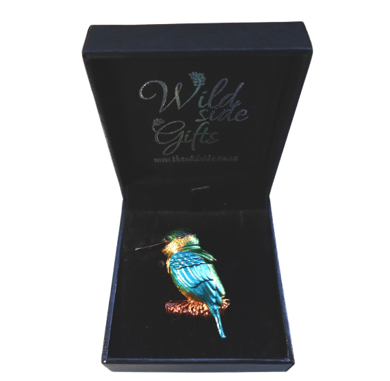 Each brooch is meticulously crafted to the highest standards and comes packaged in a beautiful ferny gift box, making it the perfect compact gift to send to someone special overseas. The eye-catching New Zealand Kingfisher brooch is more than just a piece of jewelry - it's a true work of art that combines exquisite design with impeccable craftsmanship. The brooch's eye-catching details and intricate design make it a true standout accessory, perfect for adding a touch of luxury to any outfit.