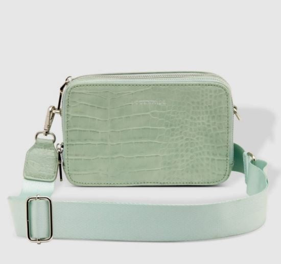 The Louenhide Celeste Croc Crossbody Bag is beautiful camera style bag, perfect for long summer days. With two zip compartments and a back side pocket there is ample room to fit your favourite belongings when you are on-the-go. The animal texture vegan leather and colour ways designed in sweet pastel hues add a sense of understated luxury, whilst being simple and wearable. Switch between the on trend thick webbing strap or thin vegan leather strap depending on your outfit and daily agenda!