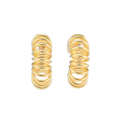 Elevate your look with the Blake Earrings, a stunning pair of gold-plated coil-wire hoops that exude modern elegance as designed & developed by Luv & Bart.