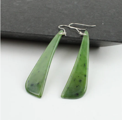 Long triangle greenstone earrings.