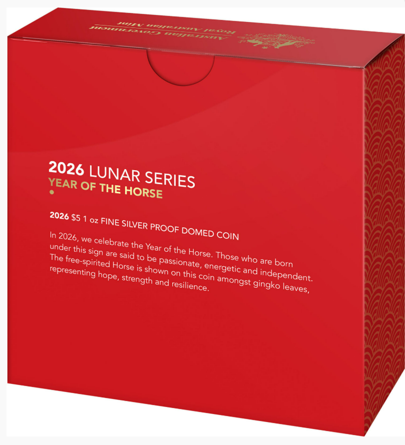 Year Of The Horse 2026 $5 Fine Silver Proof Domed Coin